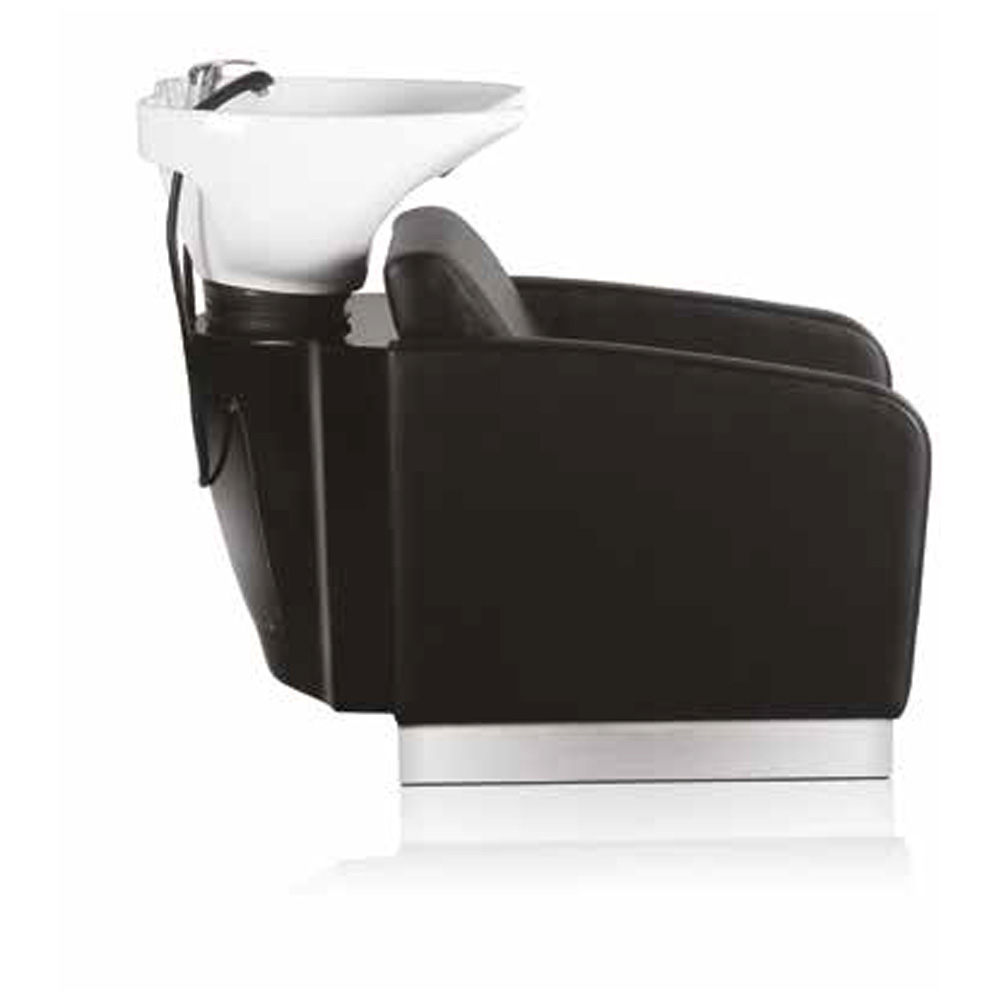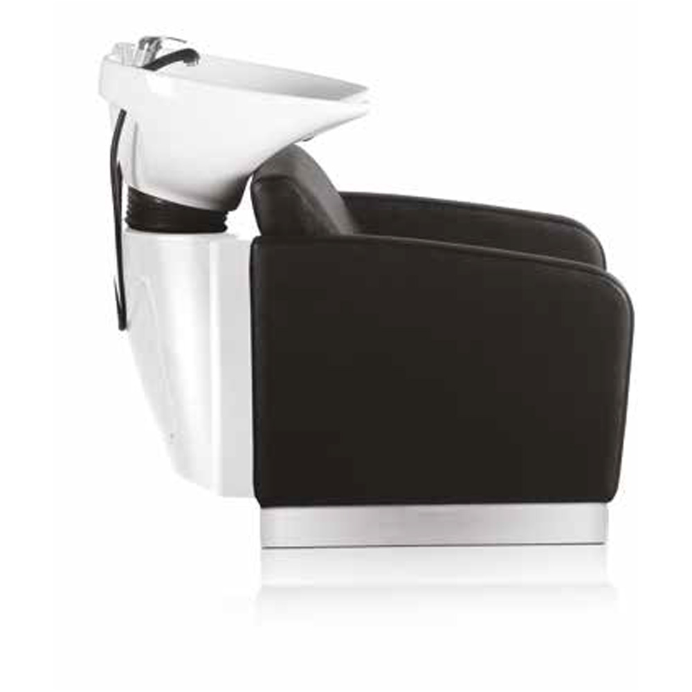 during shampoo applications. The rounded design and ergonomic basin fit into any type of salon and layout, adding class and functionality. The wash unit structure is available in black and white.