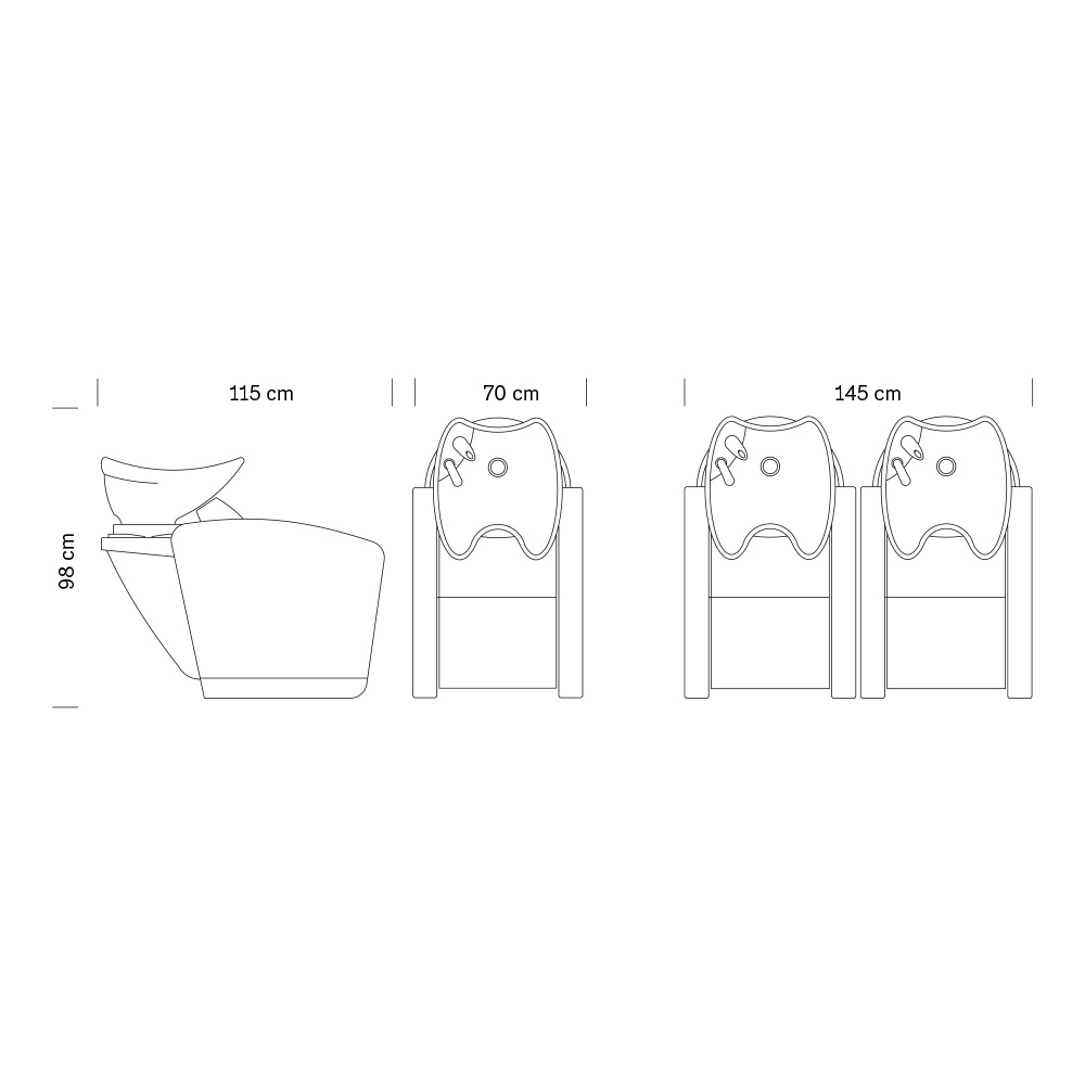 Il design arrotondato e la vasca ergonomica si adattano ad ogni tipo di salone e arredamento arricchendolo di classe e funzionalità. La struttura del lavaggio è disponibile in bianco e nero.