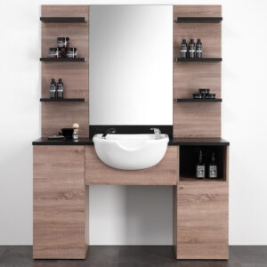 Postazione Barbiere in Legno Barber Shop con Lavello per Shampoo